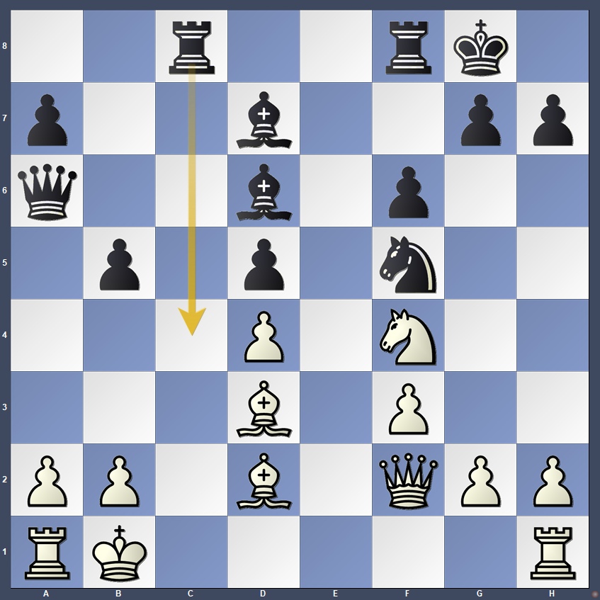 Wei Yi found a stunning solution: 22…Rc4! An incredible exchange sacrifice. Esipenko could not accept it, as opening the b-file would have led to immediate disaster.