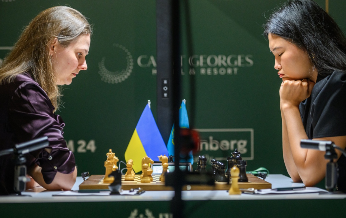 Contrary to the earlier games, Tan Zhongyi was pushing hard for a win against R Vaishali and achieved an overwhelming advantage, but let it slip away with one imprudent move. She kept pressing when disaster suddenly struck.