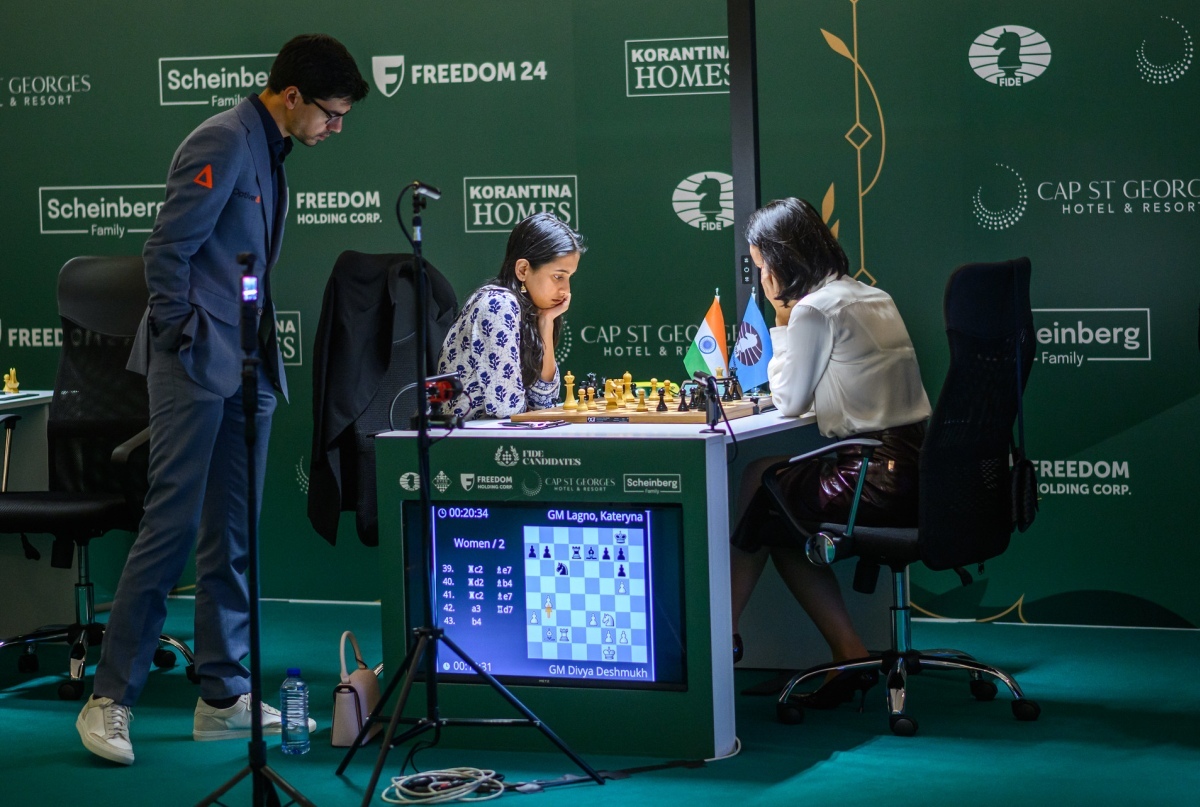 The final game of the round became one of the longest in the history of the FIDE Women’s Candidates Tournament. Divya Deshmukh and Kateryna Lagno battled all the way to move 135 before finally agreeing to a draw.