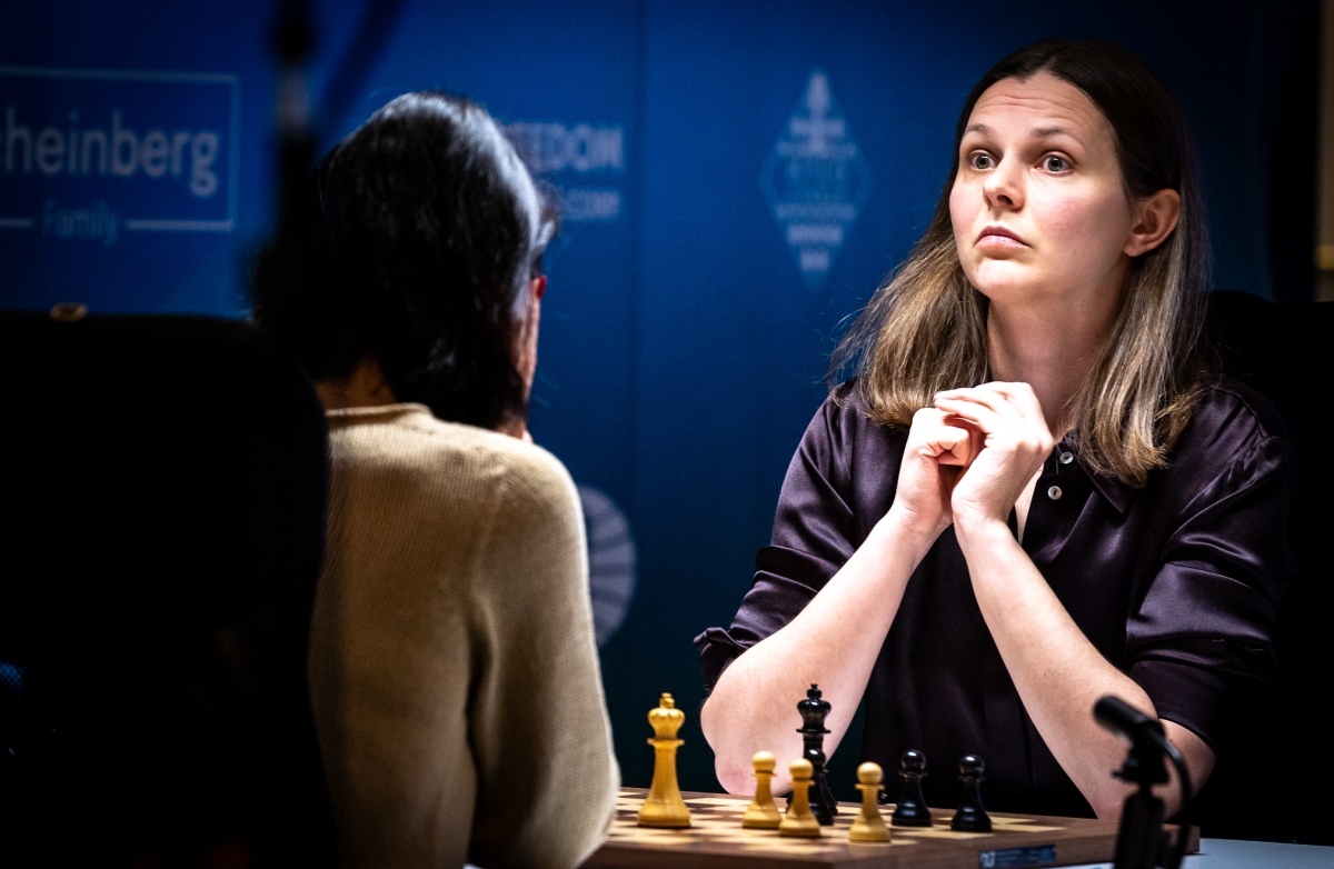 The other three games also ended in draws. Kateryna Lagno and Anna Muzychuk have played many games against each other, with Muzychuk holding a slight plus score in their head-to-head. This time, Anna switched from the Grünfeld Defence to a Queen’s Indian / Bogo-Indian hybrid.